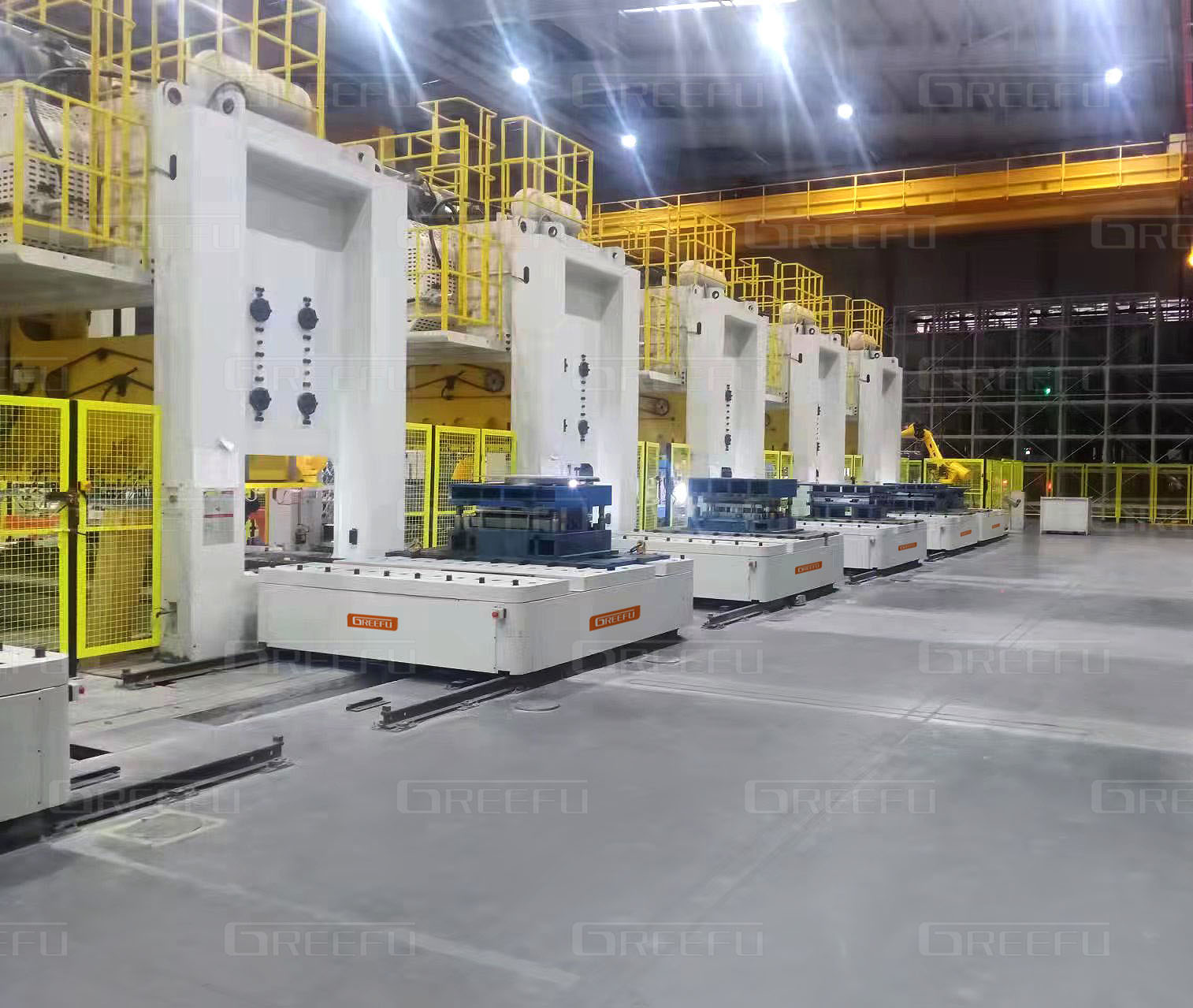 多臺(tái)沖床配合多臺(tái)換模臺(tái)車