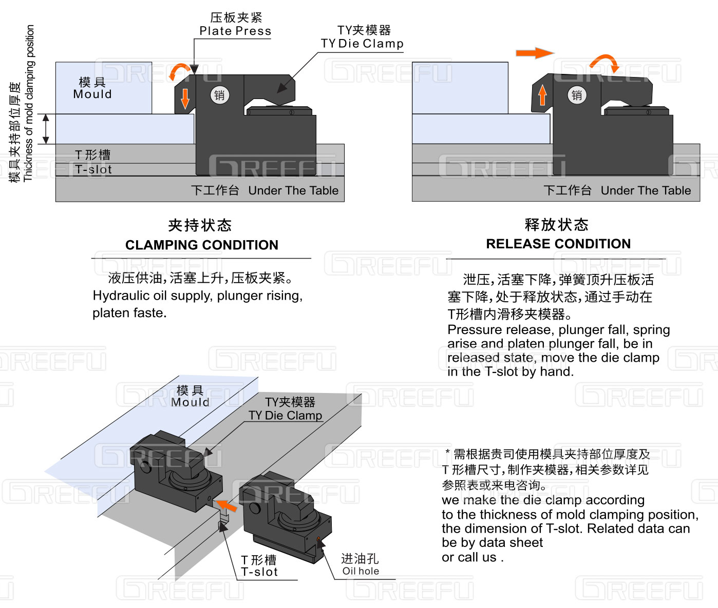 3. 訂貨時(shí)請(qǐng)標(biāo)明 T形槽尺寸 A B C D 尺寸及模具夾持部位厚度(H)尺寸;