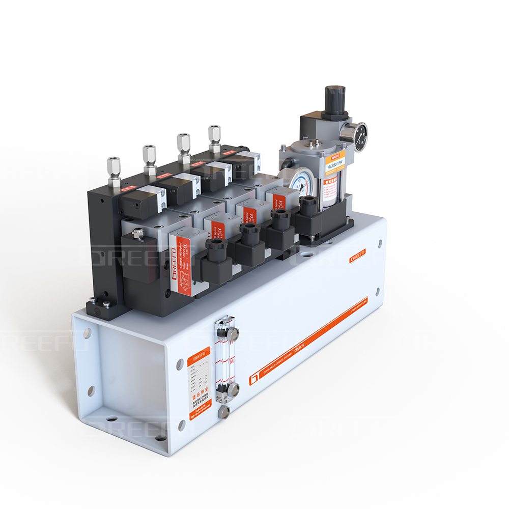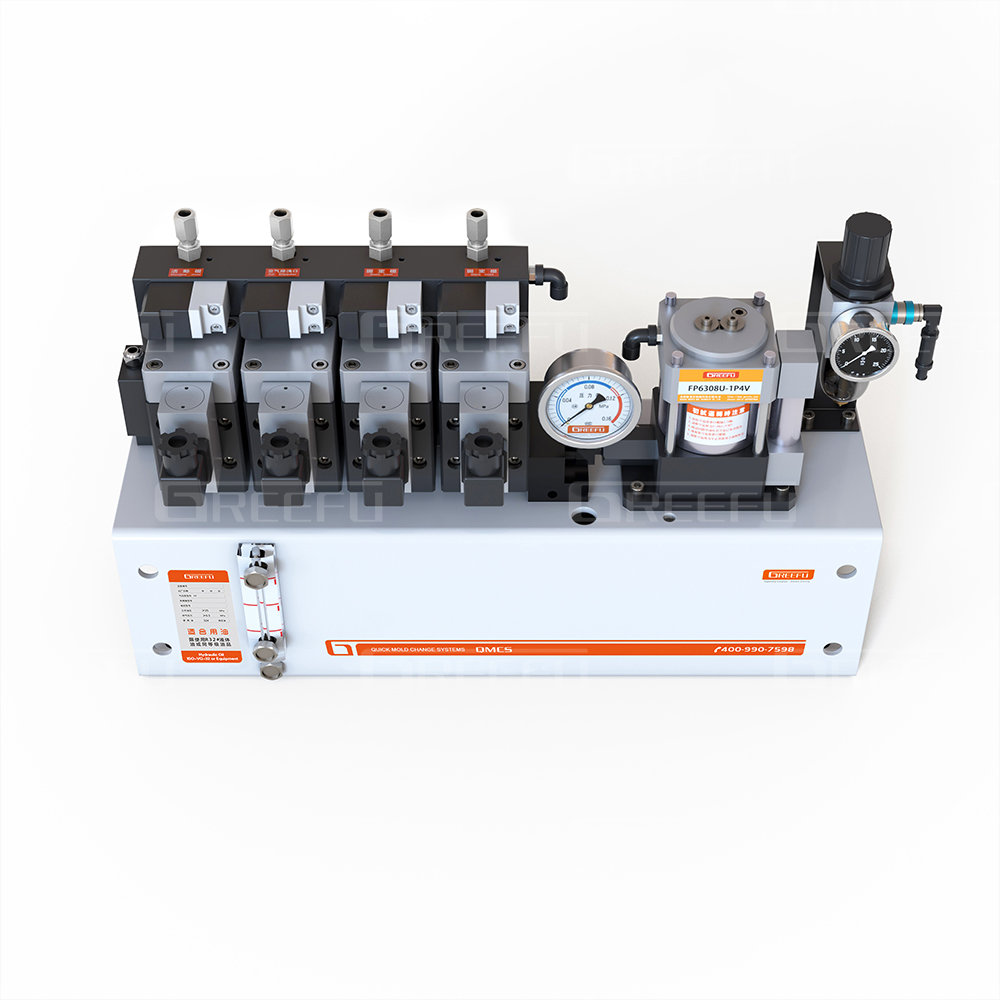 應(yīng)用實(shí)例:與2回路的氣控閥組合使用,能分別控制夾模器和模具提升裝置舉模器。